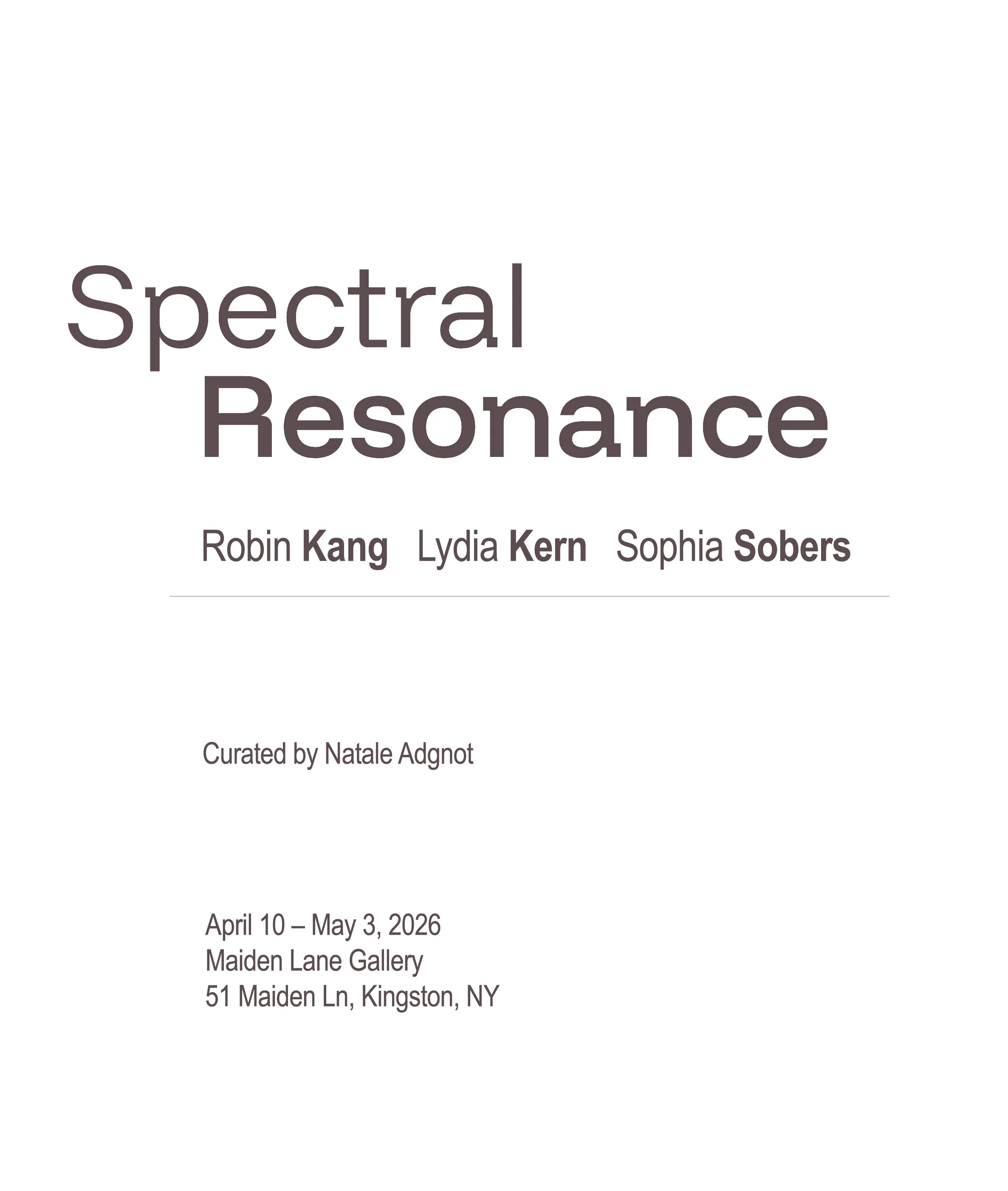 Spectral Resonance brings together the works of Robin Kang, Lydia Kern, and Sophia Sobers to examine the vibrating thresholds where organic systems meet technological architecture. With ghostly remnants of man-made technologies from medical imaging to found hardware, these artists explore how the unseen intelligence of the natural world is recorded, translated, and rematerialized through human systems.